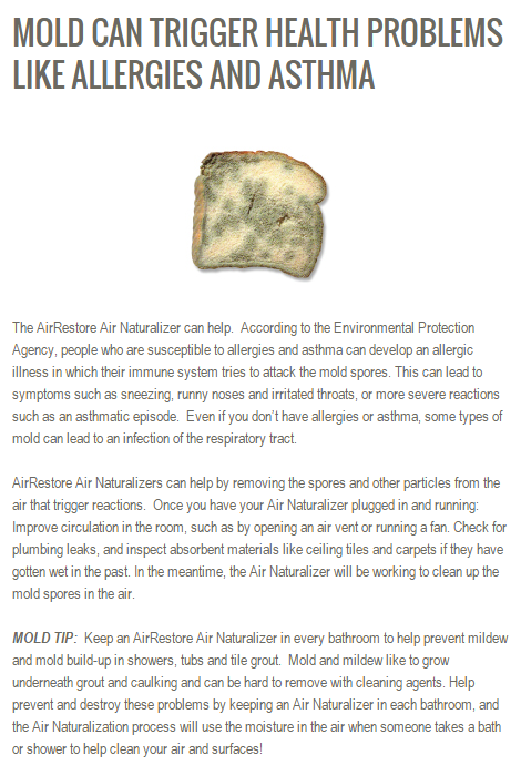 What's Different? Some generated dangerous ozone levels that caused us to have lung irritation. Some required constant maintenance. Some required expensive filters. Some were simply not all that effective at doing what they said they would do. We were frustrated, having spent so much money on these various units. But the Naturalizer is different. Totally different. It doesn't require tons of maintenance. There is NO FILTER to clean or replace. It doesn't generate dangerous ozone levels. Heck, the founder of the company even says that Underwriters Laboratory said they're going to have to invent an entirely new category for the Naturalizer, as it's unlike any other "air purifier" they've tested. To us, the biggest practical advantage of the Naturalizer units is that they don't require all the air in the room to be pulled through them, unlike conventional filters. The super-charged Elements that emanate from the Naturalizer start a cascading chain reaction in the air, effectively multiplying themselves. The Element that exits the front of your Naturalizer may not be the same particle that controls a nasty contaminant's molecule in the far corner of your room. Given that indoor air currents and physical layouts often preclude uniform airflow, the Naturalizer's cascading Element action is a HUGE advantage. This is what allows the units to be so small.